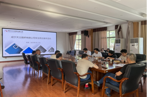 2025年5月27日為提升職工學法用法意識,響應全區“民法典宣傳月”活動號召,咸寧天立路橋有限公司組織全體職工開展 "民法典進企業" 專題學習,通過政策傳達、案例警示、法律解讀及工作部署,推動民法典在企業管理中落地應用