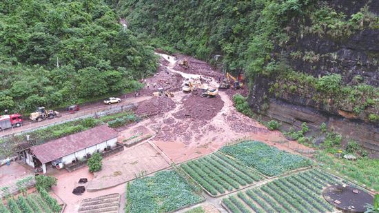 圖為湖南318省道遷清公路段搶通現場。彭清君 攝